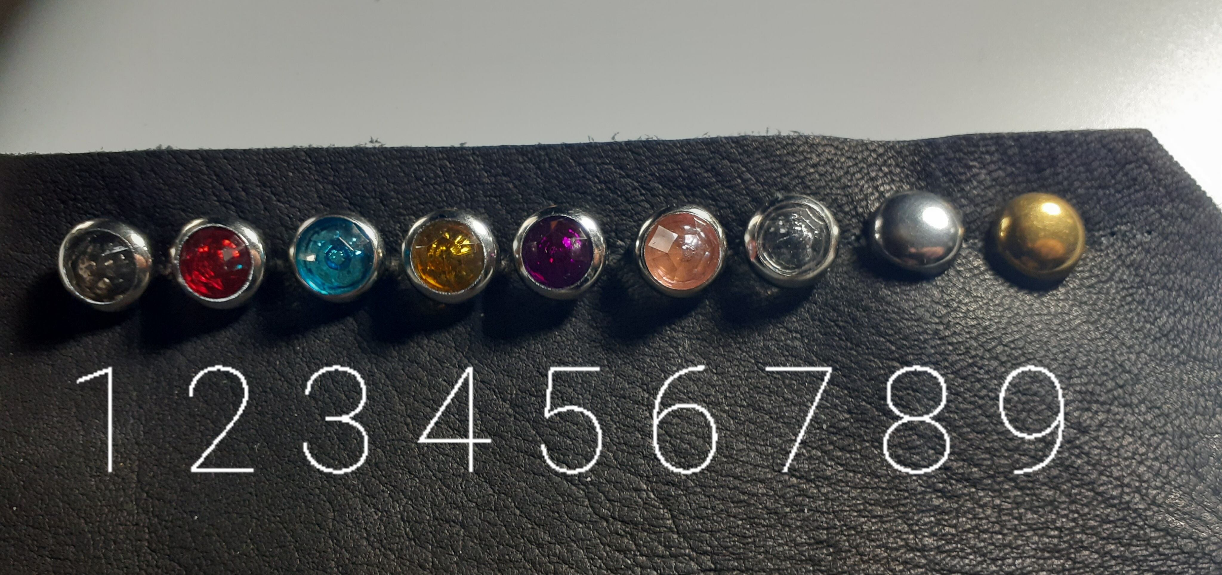 40mmのベルトまで使用可能です。中央のハイドームアクリルスタッズ・ヴィンテージタイプの色を選択できます。カラーサンプルをご参照ください。